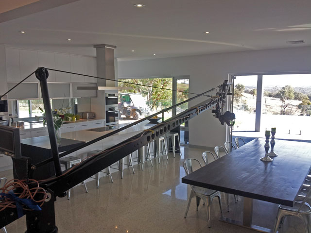 Modular jib with 2 axis remote head. Head can be under or overslung. From 1 metre to 6 metres front end length. Over 5 metres in height can be achieved. Can handle cameras weighing up to 7kg. On a dolly for easy movement . Easily set up in hard to get to places. Perfect for the small budget shoot. Located in Melbourne, Australia.